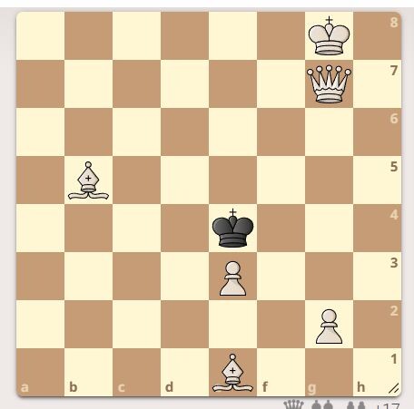 Белой пешке не 1 ход до ферзя, однако есть хитрый мат в 2 хода