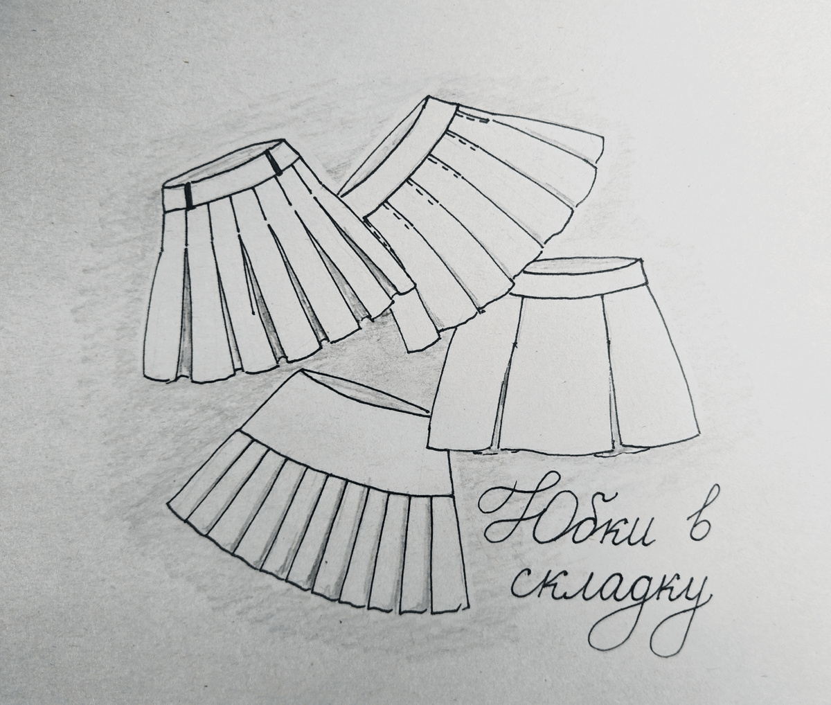Здравствуйте, дорогие читатели! По просьбе одной из моих подписчиц, я подготовила для вас статью о конструировании юбок в складку. Разберем два вида складок и четыре модели юбок.