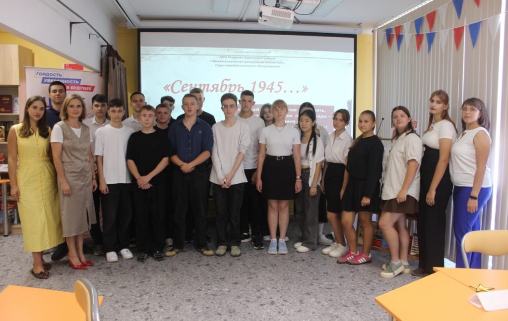 Интеллектуальную игру посвятили 80-ти летию окончания Второй мировой войны и провели в рамках федерального партийного проекта «Историческая память» при участии Штаба общественной поддержки в Ростовской области 3 сентября, межпоселенческой библиотеке поселка Матвеев Курган, учащиеся 10 класса Матвеево-Курганской школы №1 проверили свои знания об исторических фактах и событиях окончания Второй мировой войны.