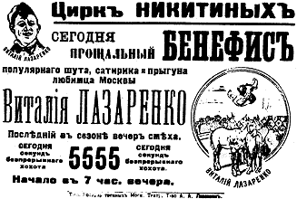 Не смотря на 13 год диктатуры пролетариата, сюда не докатилась оздоровляющая октябрьская революционная волна и не смыла с цирковой арены допотопных животных в виде тяжеловесных слонов, потешающих публику клоунов, обманывающих факиров, возбуждающих сексуальные чувства танцев и подпирающих весь этот хлам бывших хозяйчиков.