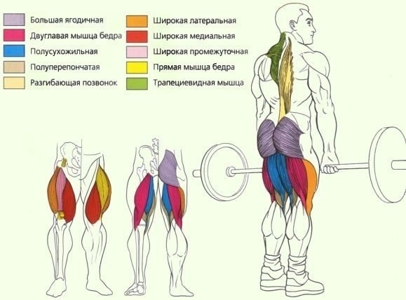 Мертвая тяга Мертвая тяга – это основное упражнение для формы, объема и изоляции мышц ягодиц и бедер. Таким образом особенно хорошо прорабатываются верхняя и средняя задняя часть бедра и ягодичные мышцы; однако эффект заметен на всей задней части тела, от шейных мышц до самых глубоких мышц голени. Это сложное и тяжелое упражнение, которое, к сожалению, не пользуется популярностью у начинающих культуристов. Боясь перегрузок, новички предпочитают более простые и легкие варианты нагрузок, однако мертвая тяга дает невероятный эффект, недостижимый с помощью альтернативных методов. Выполнение мертвой тяги требует сильной воли и большой сосредоточенности, но те, кто рискнет ее освоить, добьются потрясающего визуального и силового эффекта. После первой же попытки новички либо насовсем бросают освоение мертвой тяги, либо практикуют его на каждой тренировке. Для последних существуют еще более тяжелые и сложные варианты упражнения. Результат в мертвой тяге может служить универсальным маркером