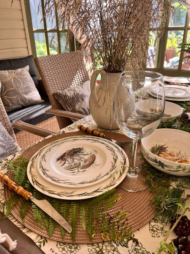 Осень для меня - это хороший повод добавить в интерьер яркие природные краски. Насыщенные, но в то же время натуральные, теплые, уютные. Все оттенки красного, рыжего, темно-зеленый, коричневый, темная охра. А еще осень - это сезон урожаев с полей и огородов, лесных даров природы. Часто использую в качестве темы для росписи и декора стола - сезонный урожай, живописные овощи, грибы, ягоды. Небольшая подборка посуды и вариантов сервировки стола на осеннюю тему. Совсем свежая работа, большой столовый сервиз "По грибы". Расписан на заказ. Перед отправкой заказчику, сервировала стол на своей даче. Для меня это интересный творческий процесс, и фотосессия для нового сервиза) Подробнее об этом сервизе рассказывала здесь: Еще одна идея для осенней сервировки. Герои росписи - садовые и лесные ягоды, но природные оттенки цвета и мухомор в качестве декора сделали сервировку вполне осенней. На столе: тарелки фарфоровые, диаметр 26 см. Особенность это серии - необычные края, окантовка тарелки. Оди