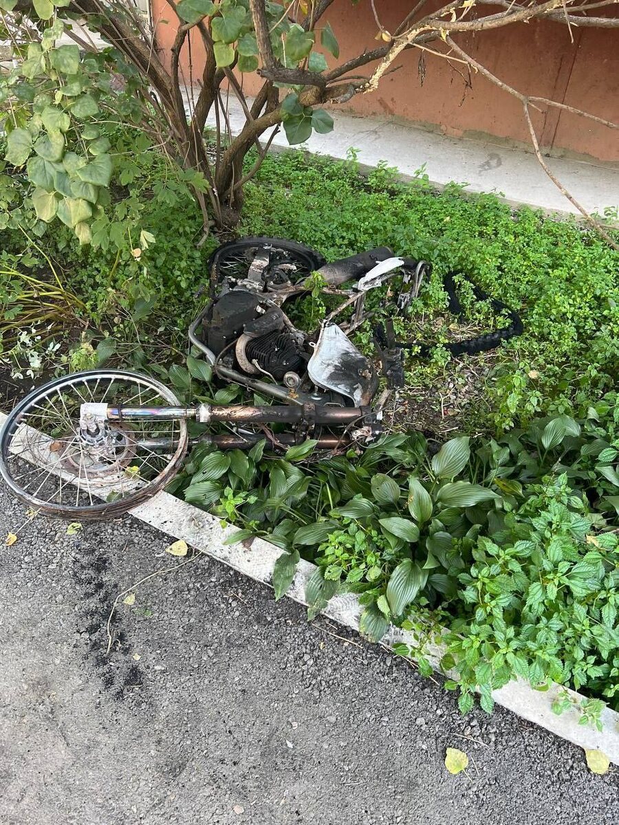 «Вот так сейчас выглядит место на ул. Полушкина, где сгорел мотоцикл этой ночью.»