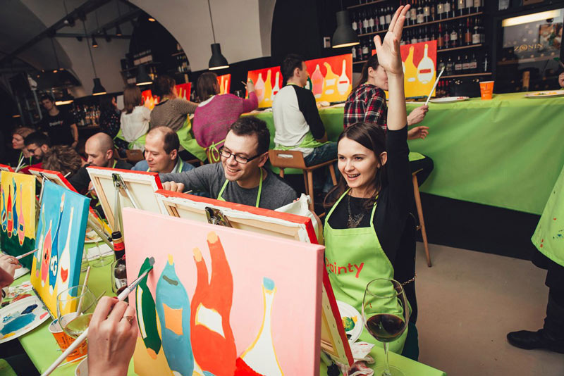 - "Вино&Холст" (м. Парк культуры) — премиальные вина, профессиональные художники
