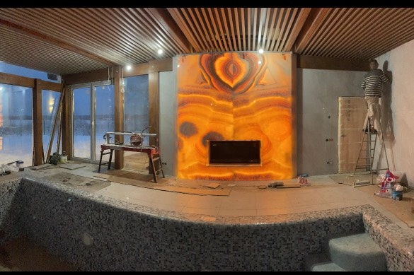 Оникс — это не просто камень, это настоящее чудо природы с уникальной текстурой и завораживающей прозрачностью. Его игра цвета и света способна преобразить любую комнату, придавая ей глубину и неповторимый шарм. Только представьте , как утончённые прожилки цвета янтаря, зелени или коричневых тонов, будто ловят свет и отдают его обратно, создавая живую картину на стенах или декоративных панелях. Чтобы подчеркнуть красоту оникса, стоит использовать его в качестве акцентных элементов: вставки в стены, фрагменты камина, колонны или панели за кроватью. !Важно не перегрузить интерьер, чтобы изысканный рисунок камня остался в центре внимания. Идеально подходят нейтральные или натуральные оттенки в дизайне, которые делают оникс главным "героем" пространства. Камень отлично работает в зонах отдыха и гостиной — здесь его красота помогает расслабиться и вдохновляет. Он гармонично впишется в кабинет или даже в ванной комнате, подчеркивая индивидуальность пространства. Главное — помнить, что этот