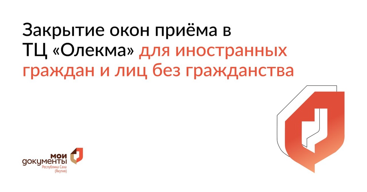 ❗️❗️❗️❗️❗️ Уважаемые заявители! Прием в ТЦ «Олекма» прекращается🔔 С 9 сентября 2025 года центр "Мои Документы" прекращает прием по адресу: г. Якутск, Окружное шоссе 4 км, 10/1 (ТЦ «Олекма»). ➡️Прием иностранных граждан (Казахстан, Кыргызстан, Таджикистан, Туркменистан, Узбекистан) и лиц без гражданства возобновляется во всех офисах МФЦ. ➡️Режим работы офисов г. Якутск ➡️Записаться на прием