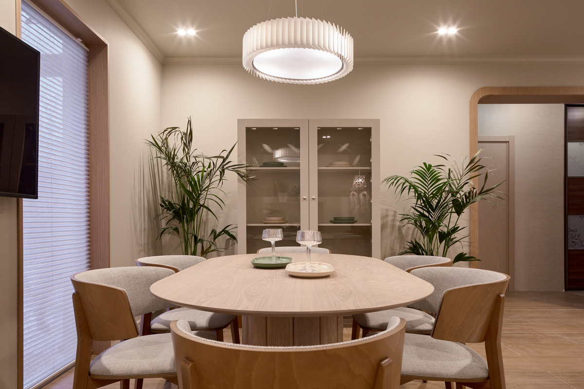 Освещение — это не просто функциональная необходимость. Это мощный инструмент, который может кардинально изменить восприятие пространства, создать нужную атмосферу и подчеркнуть концепцию интерьера. Сегодня рассказываем о четырех проектах, где дизайнеры блестяще справились с этой задачей. Когда дизайнер Екатерина Беляева работала над проектом кухни-гостиной, она создала настоящую поэтичную метафору — "белый теплоход", готовый унести своих обитателей по волнам счастливой жизни. Центральным элементом этой морской истории стал светильник Rotor Chandelier из белого акрила. Его чистые линии и благородный материал идеально вписались в концепцию пространства, не нарушая общую гармонию, а наоборот — усиливая ощущение легкости и света, словно паруса на ветру. Совершенно другую задачу решала дизайнер Ирина Картун. Ее цель — смягчить брутальный интерьер природными нотами. И здесь на помощь пришло графичное бра Vector Unit из металла, которое опоясано шпоном американского ореха. Этот светильник —