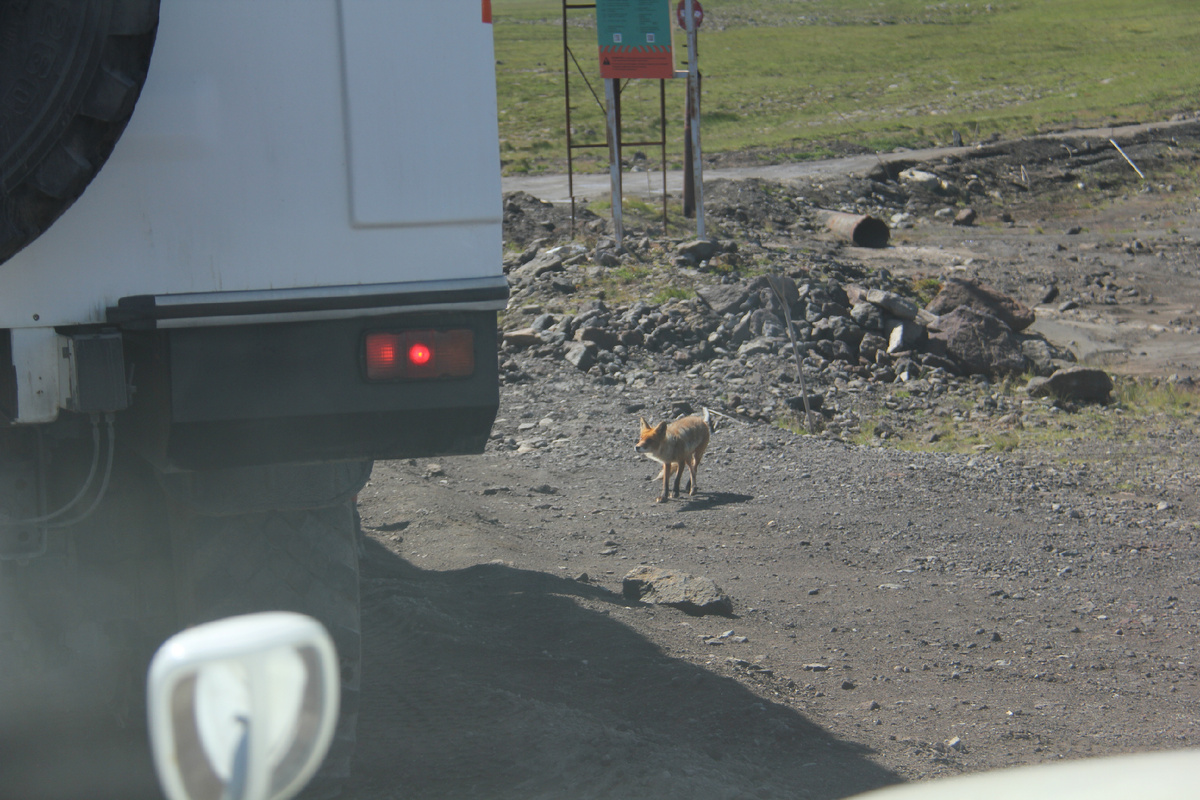 После водопада мы поехали в сторону вулкана Мутновский. По дороге нам встретился молодая облезлая лиса, которая попрошайничала вдоль дороги. Листайте. Мутновский вулкан состоит из нескольких конусов, слившихся в один массив, у него активная фумарольная деятельность - выделяется огромное количество энергии в виде выбросов вулканических газов и множества горячих источников. Эта энергия используется крупнейшей в России геотермальной электрической станцией с прямым использованием пара. Листайте. Мы остановились передохнуть на горе около ручья. Листайте. Дальше нам предстоял очередной пеший марш-бросок по горам до малой долины гейзеров, так называемых "дачных источников". Когда мы дошли до маленькой полянки с разлившимися сероводородными кипящими источниками, я , грешным делом, подумала: вот и малая долина, и идти далеко не надо...Как я жестоко ошиблась🤣! Листайте фото первой полянки. Там страшно палец в ручей сунуть - бурлящий кипяток. Зато мху очень нравится, его толщина там неимоверных