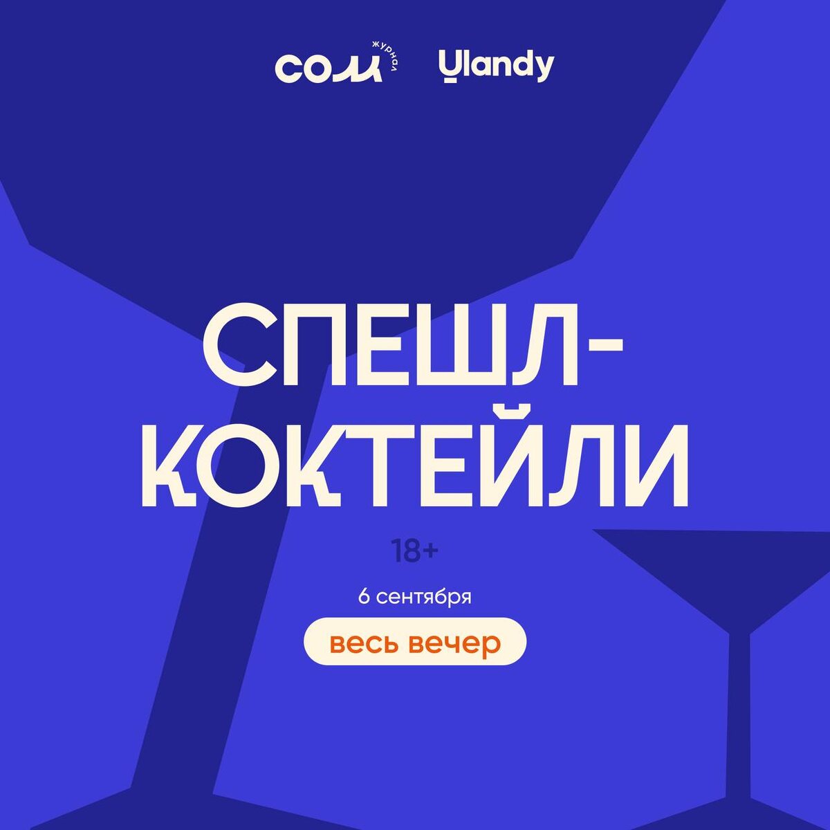 Тост в честь пятилетия журнала «Сом»: специальная коктейльная карта В честь нашего дня рождения представляем эксклюзивную коктейльную карту, разработанную совместно с нашими друзьями и виртуозами из Ulandy Bar. Позвольте представить героев вечера: 💙Сом Шприц: легкий и освежающий, с нежными цветочными нотами ликера бузины и искрящимся просекко 💙Сомбреро: элегантный и яркий: джин в гармонии с сахарным сиропом и ликером Мараскино, завершенный шипучим игристым. 💙Сомтайм: дуэт светлого и темного рома, объединенный свежими соками лайма, ананаса и апельсина, с интригующей ноткой ликера Трипл Сек и сахарного сиропа. Коктейли ждут вас на крыше с 17:30. Билеты на деньрожденческий вечер разместили по ссылке. Вход: 350 рублей – без участия в йоге, 500 рублей — с йогой. 18+ #сом_5лет