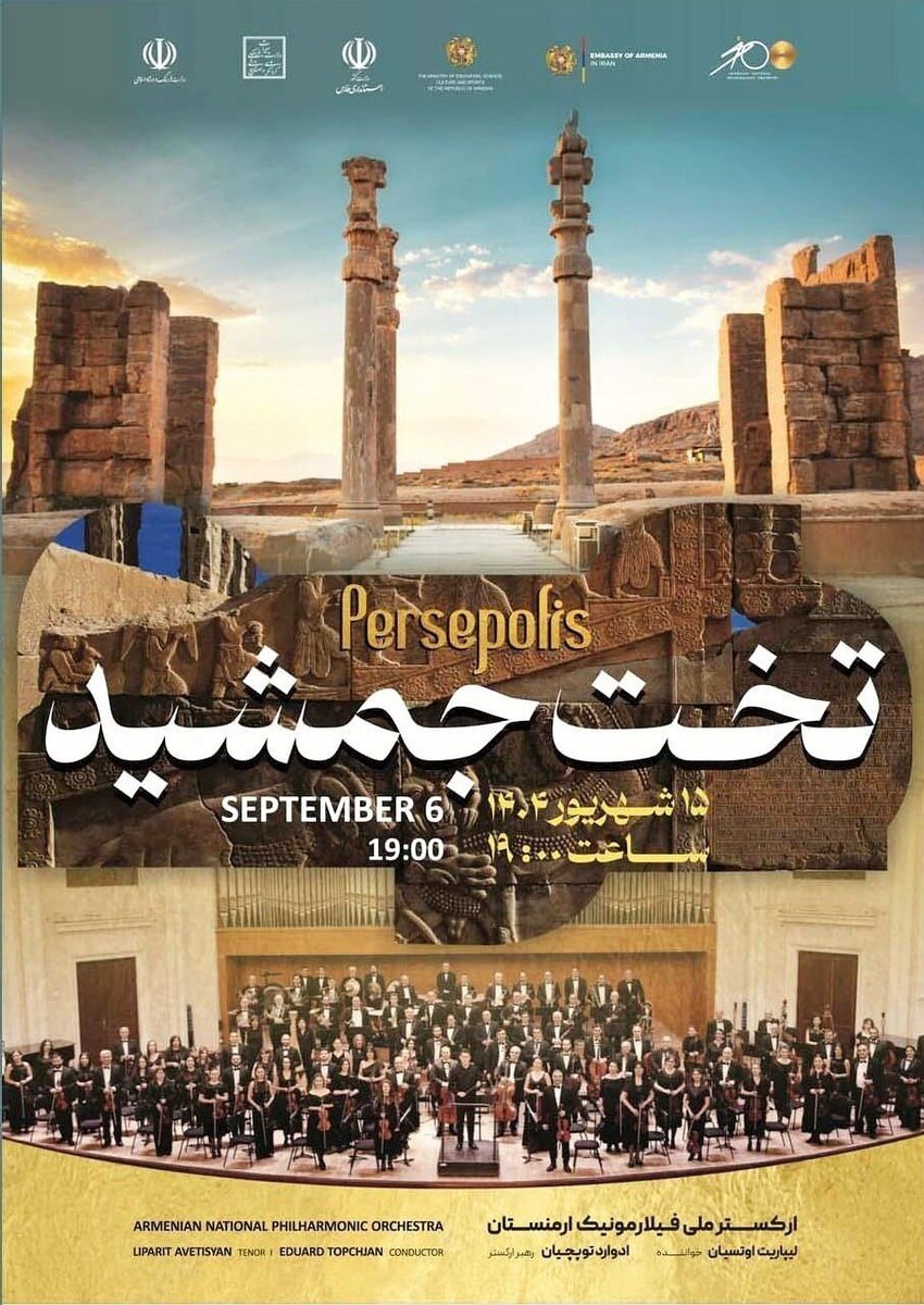 🇮🇷🇦🇲В субботу, 6 сентября, Ереванский филармонический оркестр отметит свой столетний юбилей. Выступление состоится на территории Персеполя, включенного в список Всемирного наследия ЮНЕСКО. Цель концерта — укрепить культурные связи между Ираном и Арменией.