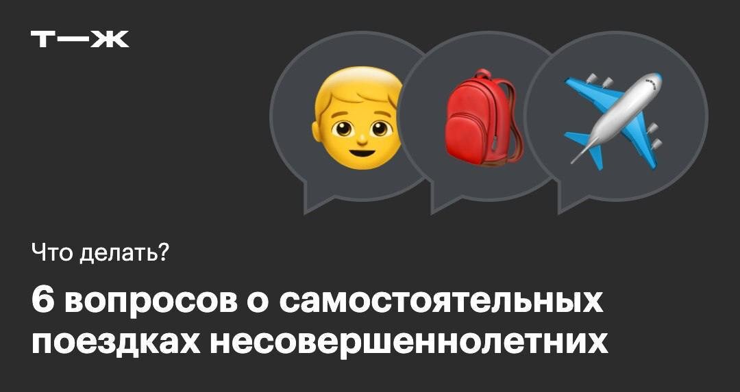 🧳 Что делать, если дети хотят путешествовать по России без родителей: ответили на 6 вопросов читателей 🟡С какого возраста ребенок может путешествовать поездом один 🟡Может ли подросток купить билет на междугородний автобус 🟡Можно ли улететь в другой город без согласия матери 📎 Задавайте свои вопросы о путешествиях в анкете «Что делать?» — мы ответим на самые интересные.