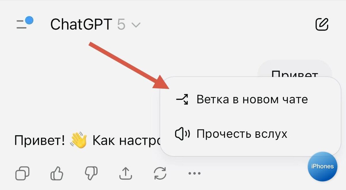 ⚡В ChatGPT появились ветки диалогов, теперь можно переносить переписки из старых чатов в новые Очень удобно для экспериментов с промтами, уже доступно для всех в веб-версии Мобильное приложение пока отстает:( #chatGPT #openAI 💬Telegram | 📹YouTube | 💳Boosty