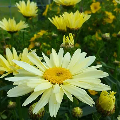 Это растение высотой около 50 см, порадует вас крупными цветами нежного кремово-желтого цвета. Нивяники отлично подходят для оформления клумб, миксбордеров и даже одиночных посадок.