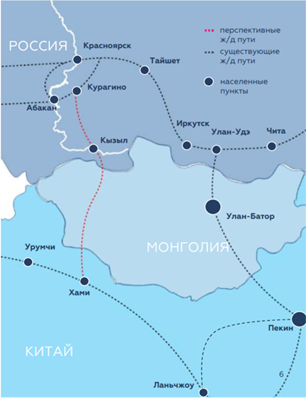 Потенциальная грузовая база железной дороги «(Курагино) – Кызыл – Хами (КНР)», по оценке Центра экономики инфраструктуры, составит от 42 до 65 млн т в год. Объем инвестиций в строительство участка «Курагино – Кызыл» в рамках концессионного соглашения при участии железнодорожных компаний РФ, КНР и Монголии, за счет средств заинтересованных частных инвесторов оценивается в сумму более 1 трлн руб.