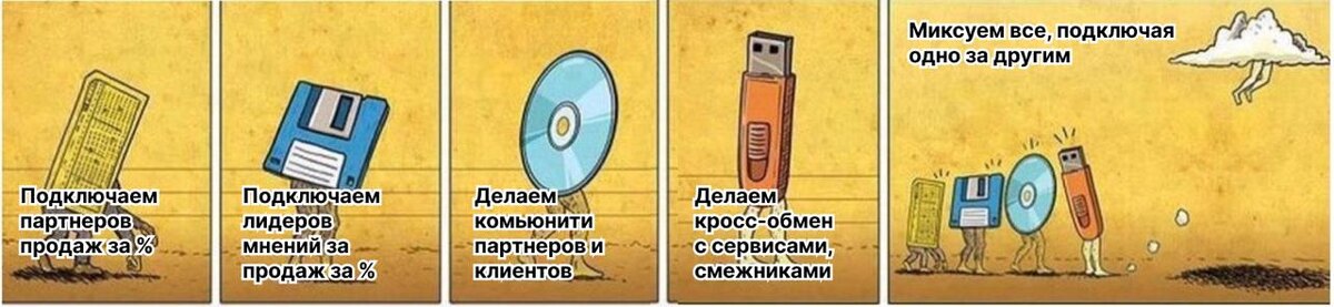 ❔Как ключевые стратегии образуют комбинацию роста для B2B и особенно SaaS-продуктов 1. Лидеры мнений — дадут трафик клиентов или партнёров продаж за %. 2. Партнёры продаж — приведут своих клиентов покупать и будут сопровождать их вдолгую, если нужно. 3. Комьюнити клиентов и/или партнёров, и/или партнёров с клиентами — увеличит вовлечённость, через групповую динамику разогреет, обучит и создаст долгий LTV. У Гребенюка, топ-эксперта в продажах, например, был маленький LTV в обучении, но в аутсорсе, если знаешь как сделать длинный, можно построить большой бизнес. 4. Кроссобмен с B2B SaaS AI пулом продуктов — это удвоение твоей базы каждый год. Аналогично первому способу, но там уже ты входишь в их базы, комьюнити и партнёрки, которые они качают по такой же схеме.