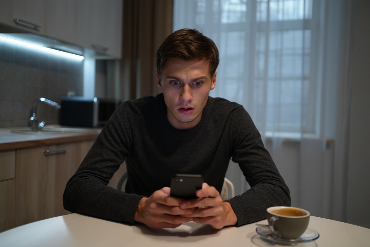 Артем прошёл на кухню и увидел что Диана забыла телефон, рядом с её чашкой. Неужели она не заметила его, когда уходила?