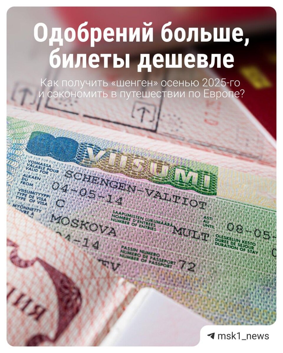 Пост для тех, кто собирается в отпуск в Европу ✈️ Визы одобряют все чаще, а курс валют больше не так кусается. В карточках @MSK1 Новости Москвы рассказали, какие страны ЕС сейчас выдают туристические визы, сколько стоит оформить «шенген», как повысить шанс на получение визы и куда дешевле всего лететь осенью 2025-го.