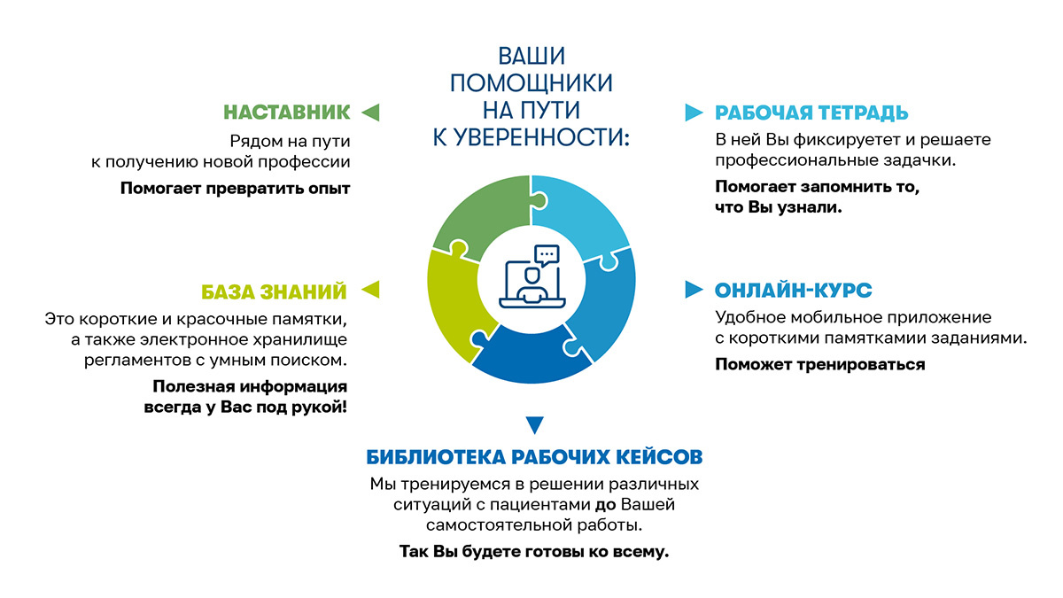 📔 Рабочая тетрадь стажера – ваш личный блокнот для клиники. В ней вы решаете практические задачи, отвечаете на вопросы и делаете заметки прямо во время работы с наставником. Это помогает надолго закрепить всё, что вы узнали и попробовали на практике.