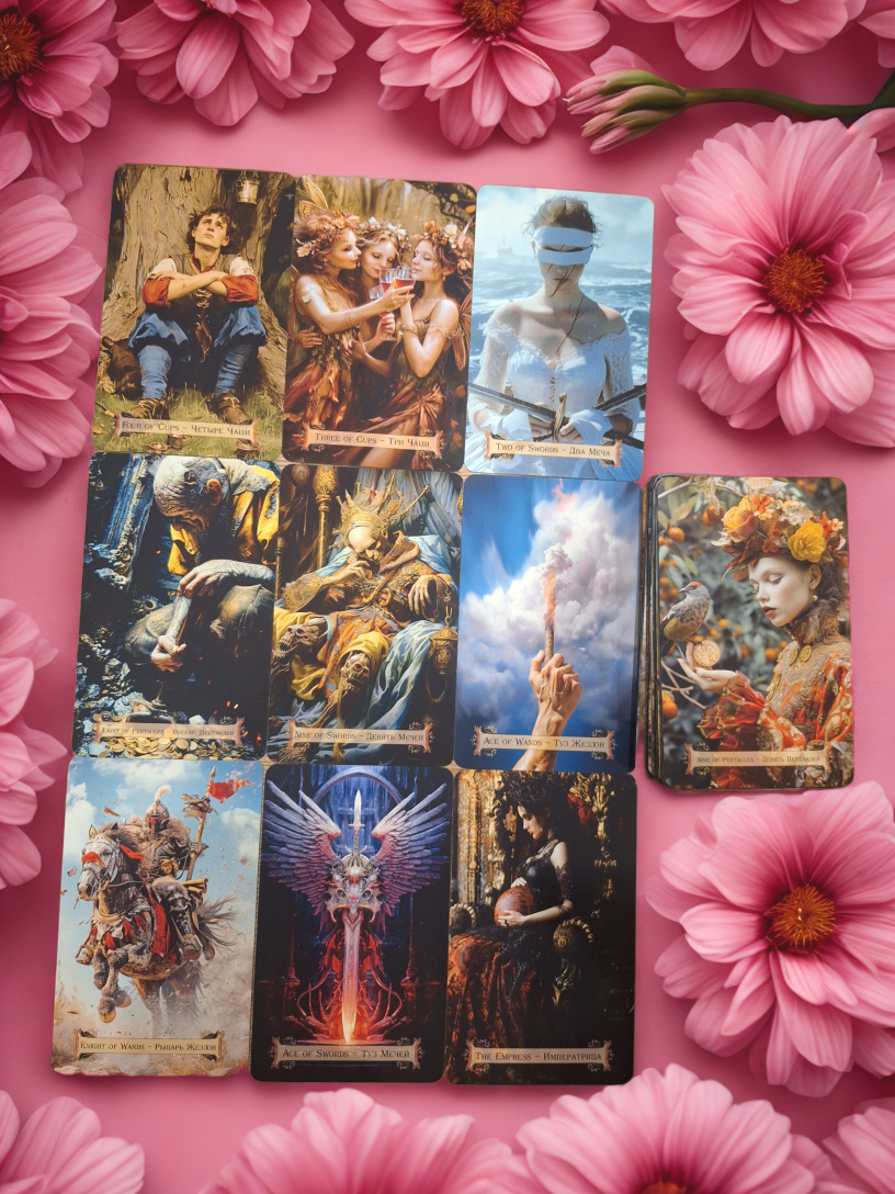 4 чаш — «Ну чего ты дуешься?🍄 Я просто задумался о смысле жизни... и о пицце.»🐘 3 чаш — «Давай тусоваться!🎶 Ну или хотя бы мемы друг другу кидать.»😂 2 мечей — «Я не игнорю, я просто выбираю между “позвонить” и “написать”.😉 #сложныйвыбор» 8 пентаклей — «Я работаю. Много. Чтобы потом взять тебя на море! Или хотя бы на шаверму.» ❤️❤️💸 9 мечей — «Сплю плохо. Скучаю по тебе. И по коту. Но больше по тебе! 🐈🥲» Туз жезлов — «Есть огонь! Предлагаю устроить свидание века. Или хотя бы заказать роллы.» 🐱🔥 Рыцарь жезлов — «Мчусь к тебе. На автобусе. Потому что такси дорого.» 🥰🏇 Туз мечей — «Честно: ты — мой лучший выбор. Даже лучше, чем отпуск!»🌸 Императрица — «Ты богиня. Я не спорю. Но не забывай, кто тут твой рыцарь!»😳 👑 9 пентаклей — «В итоге: я богат... на чувства. И немного на бонусы от зарплаты.» 👍😁 Люблю тебя, даже если иногда туплю❤️. А ты уже улыбнулась? 😏❤️