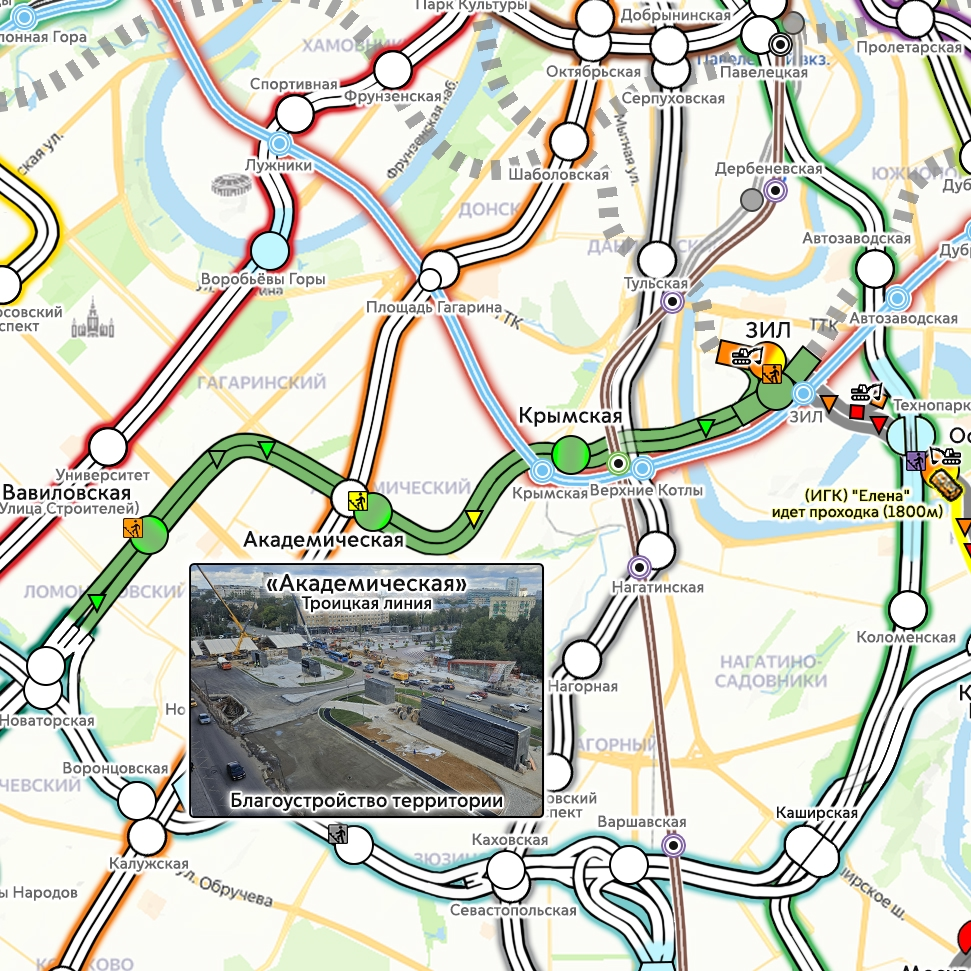 - 👨🔧 На всех площадках участка наблюдается предпусковой аврал. К сожалению, на момент выхода схемы мы не можем отметить какие-либо значимые изменения: на всех станциях (кроме «ЗИЛа») все ещё продолжается отделка входных павильонов и вестибюлей, а на некоторых площадках притоннельных сооружений только-только заканчиваются монолитные работы.