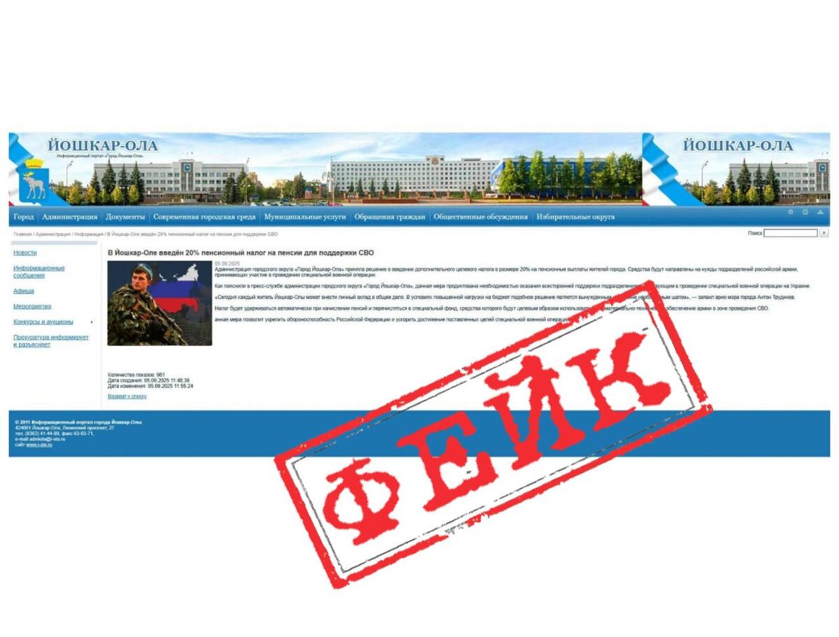 ❗️В Марий Эл снова распространяется ложная информация. В «приказе» Минздрава говорится о проведении забора биологических материалов для разработки лекарств в Марий Эл. В «сообщении от мэрии столицы» написано о введении дополнительного целевого налога в размере 20% на пенсионные выплаты для горожан, который будет направлен на нужды ВС РФ. В мэрии Йошкар-Олы и министерстве здравоохранения республики подтвердили, что подобных решений никогда не принималось.