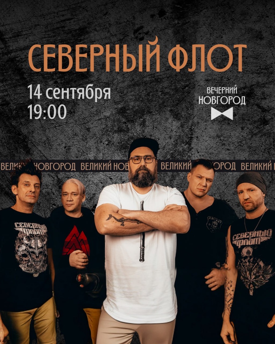 🤘 «Северный Флот» выступит в Великом Новгороде! Легендарная рок-группа устроит большой сольный концерт. Вас ждут десятки хитов, в том числе культовые песни «Короля и Шута». Это будет вечер драйва, свободы и энергии. Собирайте друзей, готовьтесь петь во весь голос и ловить незабываемые эмоции! 🗓 14 сентября, 19:00 📍 клуб Сердце 🎟 Билеты тут