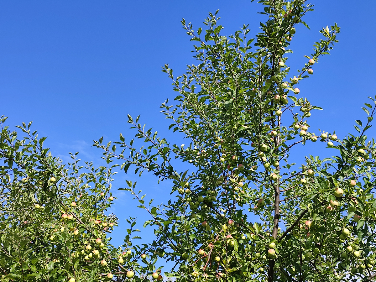 Яблони у нас на улице оказывается все разные. На одних яблоки желто-красные, на других зеленые, на третьих красные.