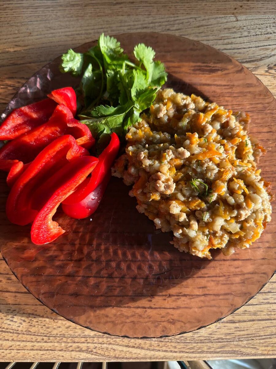 Ужин Перловая каша+киноа Фарш Морковь+лук( много) Зелень Перец Просто кашу киноа дети не особо любят. Мне нравится, а вот им нет. Но надо, чтоб если все. Поэтому я ее миксую всегда с другими крупами.