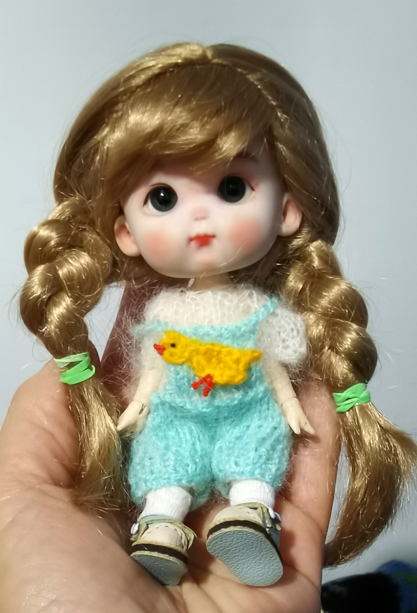 С большим трудом разворачиваюсь. Во-первых, тушка болит от повышенных физических нагрузок, во-вторых - неписательство и нетворчество в течение нескольких дней - расслабляет. Хотя совсем не творить я все-равно не смогла бы... Хоть кривую зарисовку, хоть пару петелек в вязании - НАДО. Душа просит. Первым делом душа попросила связать что-нибудь быстрое, несложное и мило-уютное. Чтоб за вечер осилить. Посмотрела на кукольную полку и столкнулась со взглядом Аси... -Я ж тебе совсем недавно платье с морковкой связала! -А с птичкой? -Чего с птичкой? -Не знаю...Хочу с птичкой. Примерно такой диалог состоялся у нас с куклой поздно вечером, после картофельного дня... Ладно, придумаю тебе птичку. Пришью куда-нибудь... Нашла я пушистую тонкую пряжу белого цвета и голубую - потолще, для контраста. Решила опять не заморачиваться и связать комбинезон, имитирующий кофточку и штанишки на лямках. Ася одобрила. Кстати, добавила эту же тонкую белую пряжу к голубой, и качество последней изменилось в луч