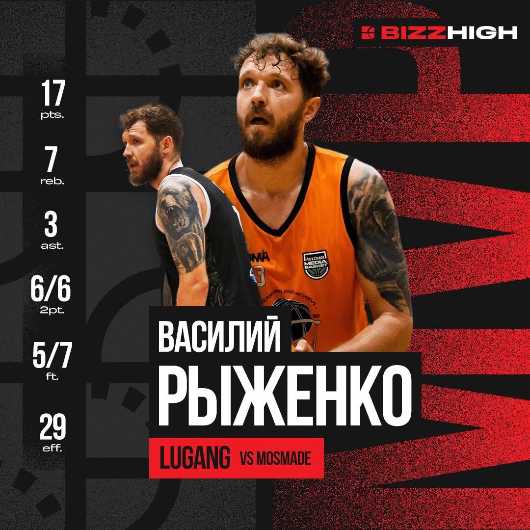 MVP ABL Bizz Рыженко Василий (LUGANG) vs Mosmade Bizz High 58:39 17 очков, 7 подборов, 3 передачи, 6/6 2-очковые, 5/7 штрафные, 29 эффективность Mosmade дали достойный бой LUGANG финале. Никакого побоища не было и в помине. У самого Рыженко матч складывался не просто: Василий получили 3 фола в первой четверти. Но Рыженко это не смутило. Василий провел шикарную вторую четверть, набрав 6 очков и выбив 12 эффективность за 6 минут на паркете. Благодаря его фундаментальной игре под кольцом большие Mosmade подсели на фолы и не доиграли до конца игры. А сам Рыженко закончил встречу с великолепной бросковой реализацией и лучшей в туре эффективностью. 1️⃣@ABL Moscow