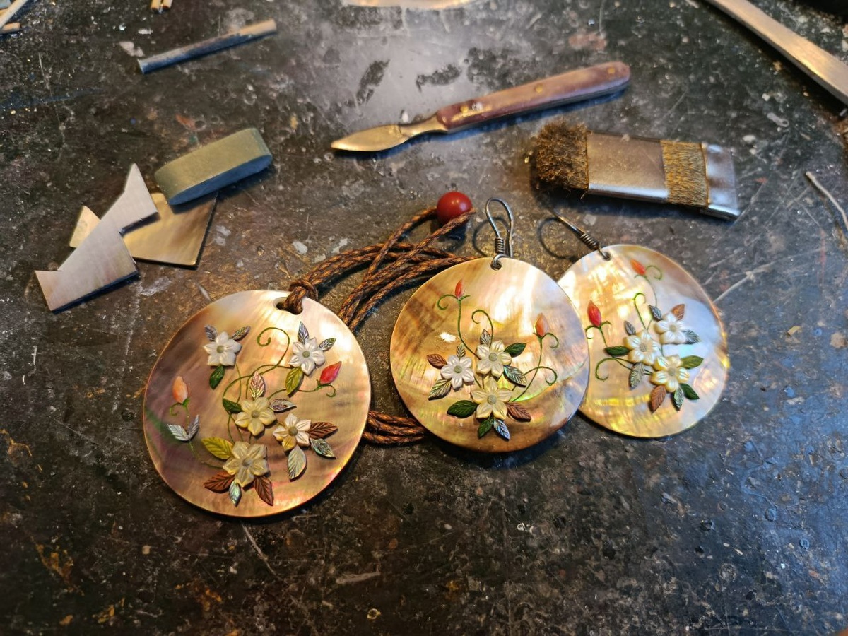 На юбилей подруге, сочинил кулон и серьги, шнурок тоже свой...