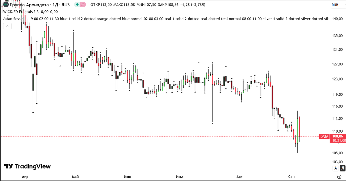 ❗️Глава Сбербанка Герман Греф заявил, что с учетом нынешней инфляции, ставка ЦБ должна быть на уровне 12% и ниже, чтобы экономика "ожила". Напомню, что собрание состоится 12 сентября, где, по прогнозам, планируют установить ставку в размере 16%, а на конец года прогнозируется 14% 🧑💻Акции «Аренадаты» прибавили 5,52% на фоне новости о том, что уголовное дело о взятках в отношении миллиардера и основателя IT-холдинг «ГС-Инвест» Сергея Мацоцкого закрыли в связи с его непричастностью к преступлению (рис.1). 💰Сейчас интересно рассматривать несколько компаний, которые чувствуют себя довольно хорошо в условиях нынешних колебаний: Х5(хоть и последнюю неделю она падает, но сейчас она хорошо переживает все колебания рынка, и это лишь повод набрать позиции здесь по сниженным ценам), Лента, Новатэк, Мать и дитя и Т-технологии ❓Что думаете по поводу этих бумаг, и какие ожидания по рынку в целом? *Не является ИИР