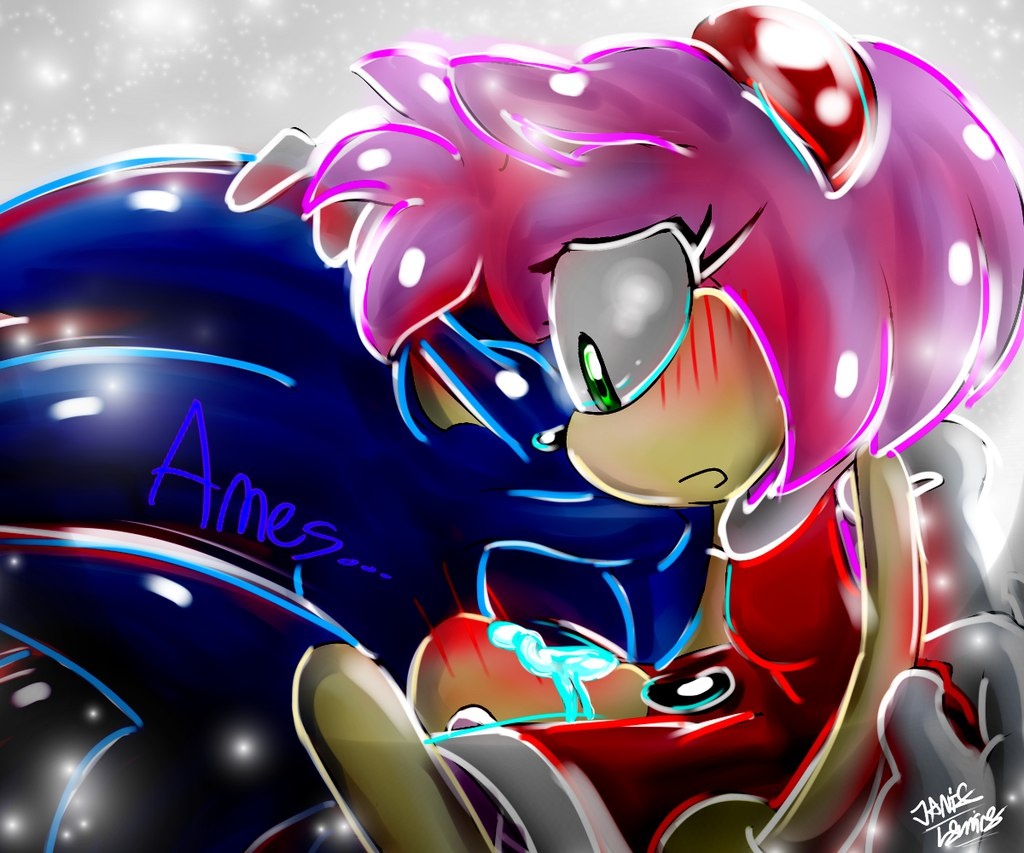 Соник и Салли обрушились : и Соник решил навестить свою подругу: Соник : привет Эми ! Эми : привет Соник ! Соник : Эми , прости меня пожалуйста , за то что я бросил тебя! Эми : извинения приняты , кстати твоя Салли на самом деле тебе изменяет ! Соник : когда? где? с кем ? Эми : а , во всеми парнями мобиуса ! она не любит тебя Соник , и некогда не любила просто играла с тобой! Соник : вот она вертихвостка ! Эми : и что ты будешь делать? Соник : разведусь с ней ! и ёж побежал в Нотхол и сказал Салли что уходит от неё: она ему устроила скандал: но , ёж уже убежал : и снова был вместе с Эми ; кстати забыла сказать Эми выглядит вот так :