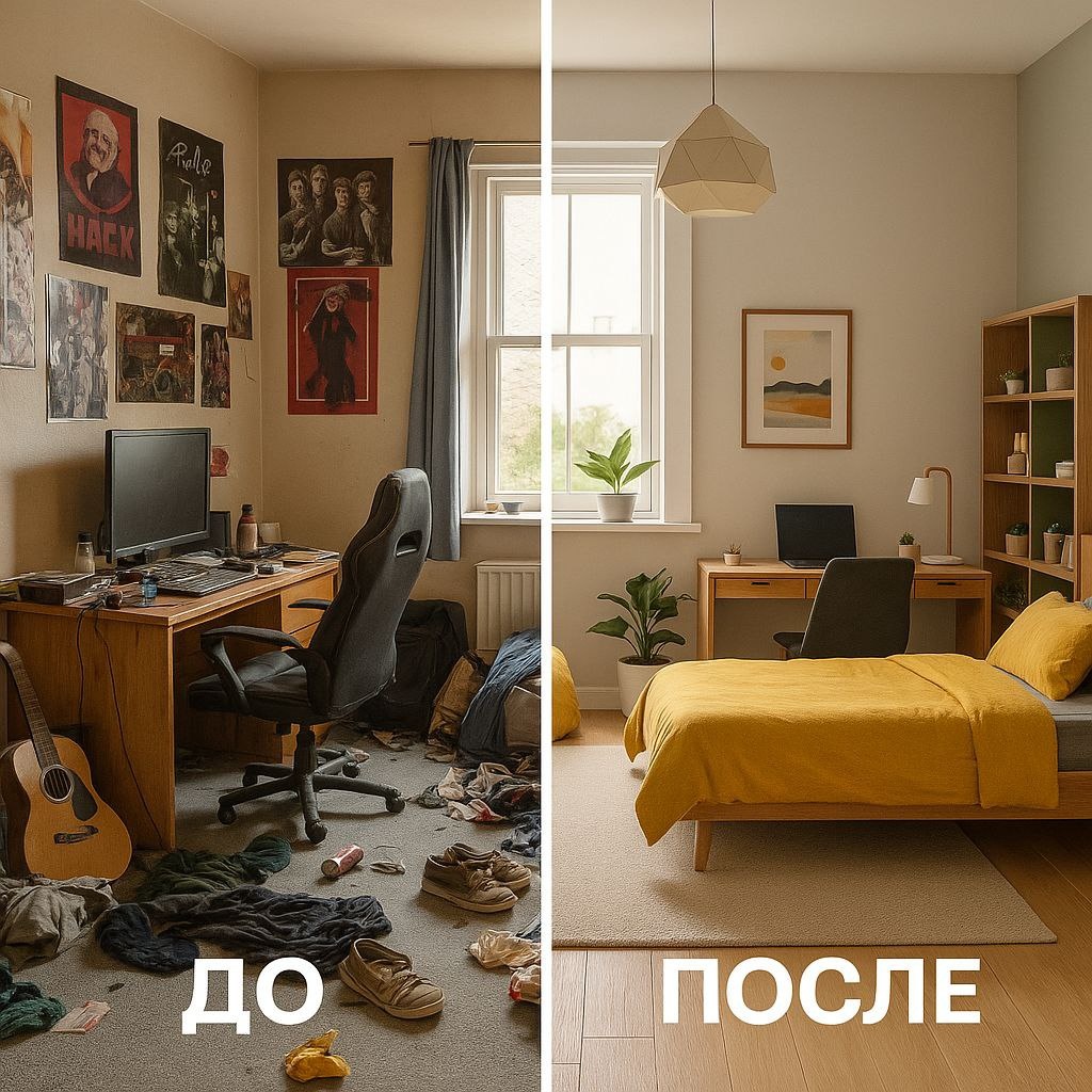 😅 Когда родители говорят «наведи порядок в комнате», старшеклассник обычно слышит: «переставь стул и спрячь носки под кровать
