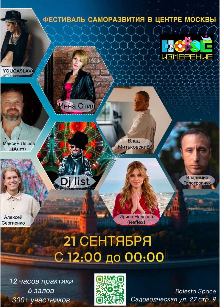 ВАЖНО! 21 сентября Новое Измерение сделает концептуально новый проект в центре Москвы, соединяющий Практики, Арт, Искусство. Приглашены медийные хедлайнеры, топовые ведущие и лидеры. Крайние заявки от ведущих принимаем до 10 сентября. Далее слоты для ведущих будут закрыты. Заявки принимает @mossyulia Так же с 8 сентября будет значительное повышение цен на билеты для всех участников. Если вы желаете посетить фестиваль , рекомендуем приобретать билеты заранее 🌓 Купить билет на фестиваль 🌓 Купить билет по реферальной ссылке со скидкой и кэш бэком
