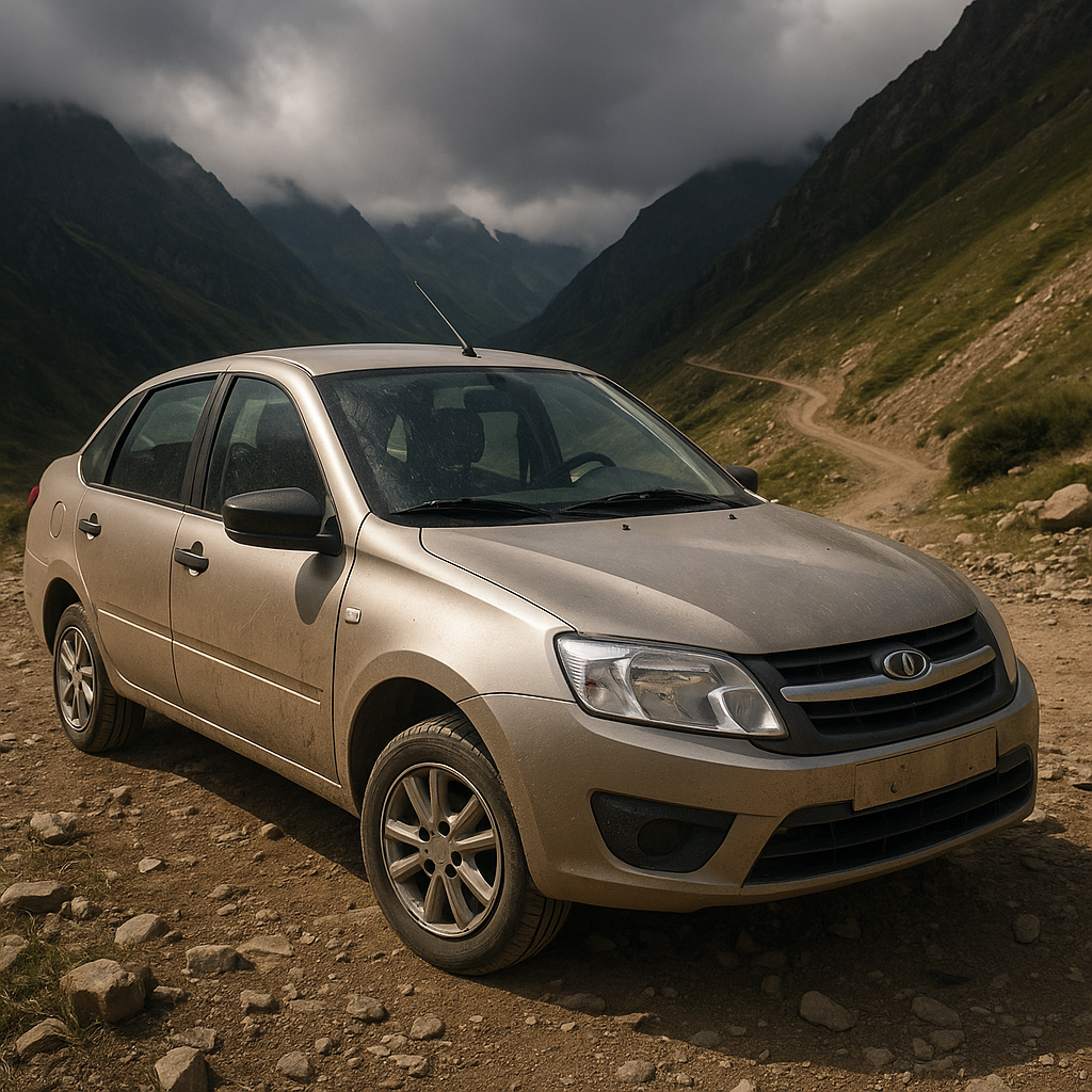 Лада Гранта — машина, которую никто в здравом уме не повезёт в горы. Но я сделал это. И теперь знаю, как быстро могут закончиться тормоза на перевале и зачем нужна лопата даже летом. Иногда решения принимаются на спор, иногда — из-за глупости, но в этот раз всё было иначе: я просто хотел проверить, на что способна обычная бюджетная машина в условиях, где обычно ездят только джипы и внедорожники. У меня была Лада Гранта, седан 2018 года, и отпуск. Денег на аренду УАЗа не было, но было дикое желание уйти с асфальта и увидеть настоящие горы. И если быть честным, я не ожидал, что эта затея зайдёт так далеко. Я выбрал маршрут через Кавказ: из Майкопа в сторону Лаго-Наки, с заездом в горную часть плато и попыткой спуститься к Адыгейским перевалам. Асфальт заканчивался через 40 км, дальше шёл грунт, который с дождями превращался в кашу. Высота — около 1800 метров над уровнем моря, постоянные подъёмы, узкие серпантины и никакой сотовой связи. Погода не подвела: жара днём до 30, вечером ливни с
