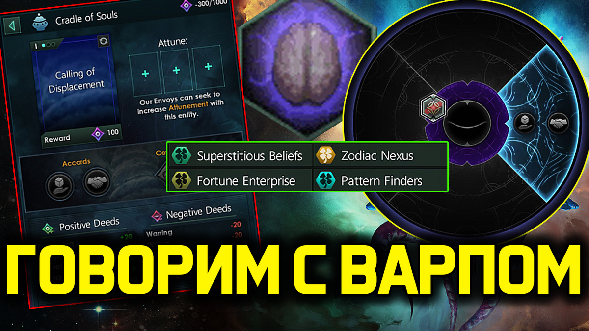 Посмотрине например на «Колыбель душ», которая требует порядка и гармонии. На панеле вы видите, какие действия вас притягивают к этой сущности, а какие отдаляю. Еще как ни странно вы можете назначить псио-послов для улучшение отношений с сущностью. В итоге ваша раса переместиться в варпе на территорию этой сущности и получит бонусы от сонастроенности.