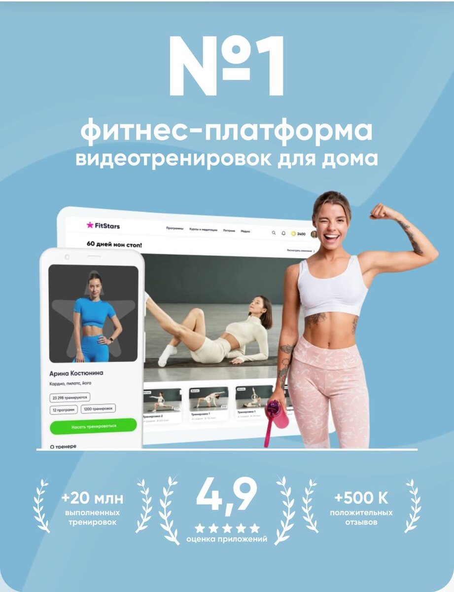 Привет, дорогие друзья! Я — ваш стилист, и сегодня хочу поговорить не только о моде, но и о том, как стиль и здоровье могут идти рука об руку. Каждая из нас знает, что уверенность в себе — это один из главных секретов безупречного стиля. И иногда она не зависит от наряда, а формируется благодаря здоровому и стройному телу. Когда мы чувствуем себя хорошо в своем теле, любая одежда сидит на нас просто идеально. Мы можем носить самые смелые образы и быть уверенными в том, что выглядим великолепно. Но как достичь этого состояния? Как сделать так, чтобы стиль и здоровье стали нашими верными спутниками? Я поставила перед собой цель — привести себя в форму и поддерживать здоровый образ жизни. Если вы еще не решили, с чего начать, то у меня есть для вас отличное предложение — домашние онлайн-тренировки с FitStars! ▎Почему именно FitStars? Удобство: Зачем тратить время на дорогу в спортзал, если можно тренироваться в комфортной обстановке своего дома? Вы сами выбираете время и место для