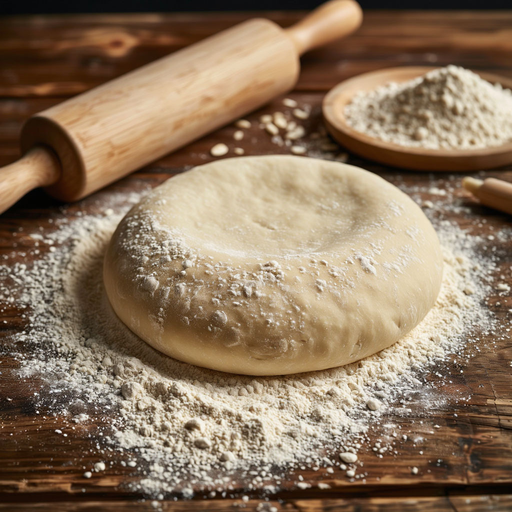- Посыпка мукой — слегка припылите поверхность и скалку, чтобы тесто не прилипало.