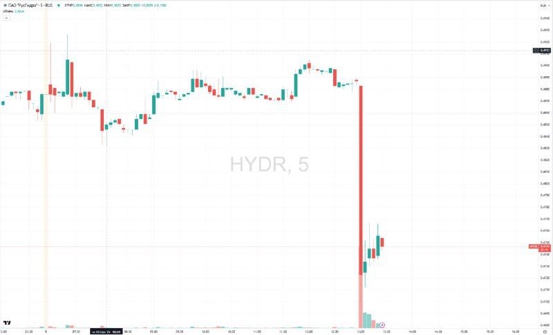 Акции Русгидро резко снизились после сообщения о том, что правительство в четверг на совещании по энергетике од… Акции Русгидро резко снизились после сообщения о том, что правительство в четверг на совещании по энергетике одобрило мораторий на выплату дивидендов компанией до 2029 года. Котировки за четыре минуты потеряли 3,83% и на минимуме опустились до 0,47 за бумагу. По сравнению с уровнем закрытия предыдущего дня снижение составило 3,61%. Подробнее Акции «РусГидро» упали на сообщении об одобрении моратория на дивиденды Данные: TradingView Подписаться на «Сам ты инвестор!» #инвестиции #котировки #финансы #деньги Сообщение появились сначала на . #инвестиции #самостоятельныеинвестиции #техническийанализ #индивидуальныйинвестиционныйсчет #валютныйрынок blog.neotorg-line.ru