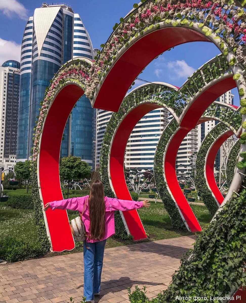 Цветочный парк в Грозном Это уютное место в самом сердце Грозного, рядом с комплексом «Грозный-Сити». Особенность парка - в оригинальной подаче: цветы здесь не на газонах, как обычно, а в аккуратных горшках, подвешенных на металлических арках в форме сердец. Выглядит это очень нежно и романтично - особенно в тёплое время года, когда всё цветёт и благоухает. В парке также есть фонтан, живые скульптуры из растений и молодые деревья - создаётся ощущение лёгкости и спокойствия. 📌Цветочный парк в Грозном на карте #чечня #цветочныйпарк