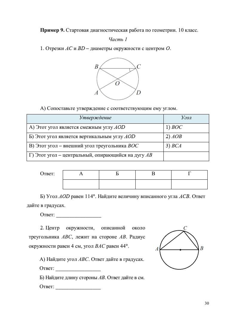 Стартовая диагностическая работа по геометрии 10 класс, рекомендованная Министерством Просвещения РФ