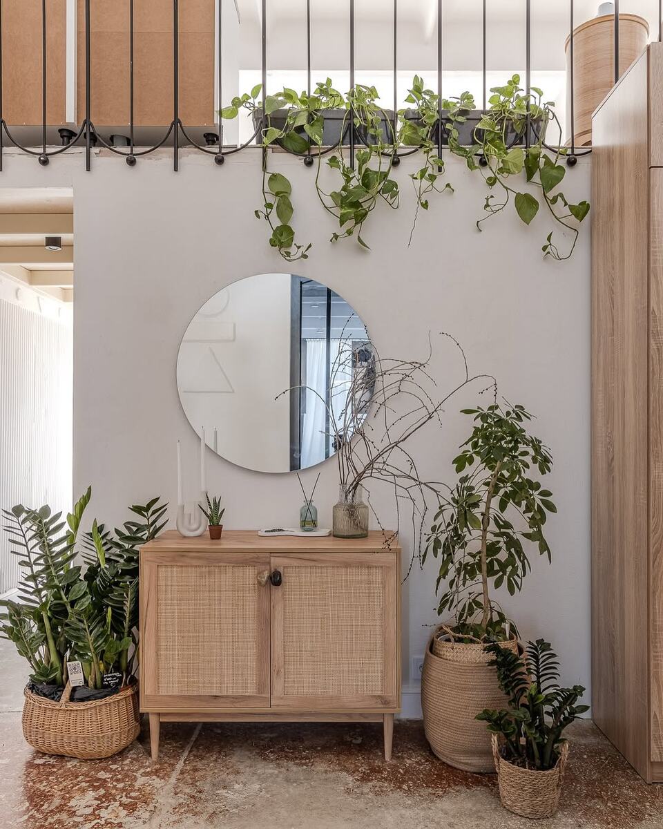 На этапе обсуждения прихожей с заказчицей изначально рассматривалась идея классического ресепшена — с администратором, встречающим гостей. Однако, по мере развития проекта мы поняли, что хочется уйти от формальности и создать более душевную, камерную атмосферу. В итоге мы отказались от зоны администратора, которая как бы отгораживает посетителей, и вместо нее оформили прихожую как более радушное, домашнее пространство. Благодаря планировке, свет свободно распространяться по пространству, проникая даже в зону прихожей. Поэтому, входя в помещение, сразу открывается вид на высокий потолок, и не возникает эффекта «колодца».