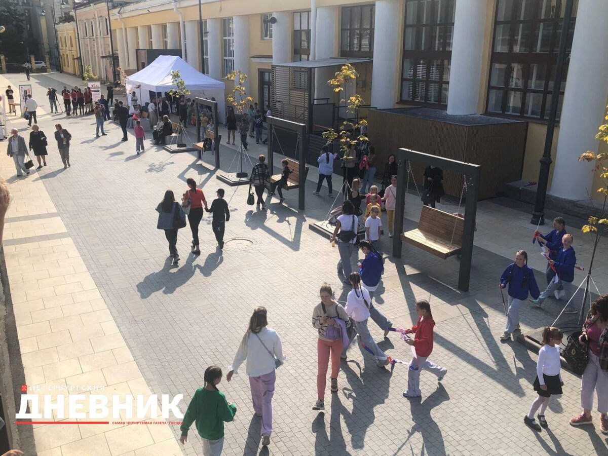 💫 У Василеостровского рынка появилась новая пешеходная зона Новое общественное пространство украсили шесть кленов. Также здесь выполнено мощение из плитки общей площадью 1 910 квадратных метров. В хорошую погоду здесь можно покачаться на трех качелях или посидеть и отдохнуть на скамейках. Для любителей передвигаться на велосипедах смонтировали шесть велопарковок. Фото: Яна Григорьева Петербургский дневник