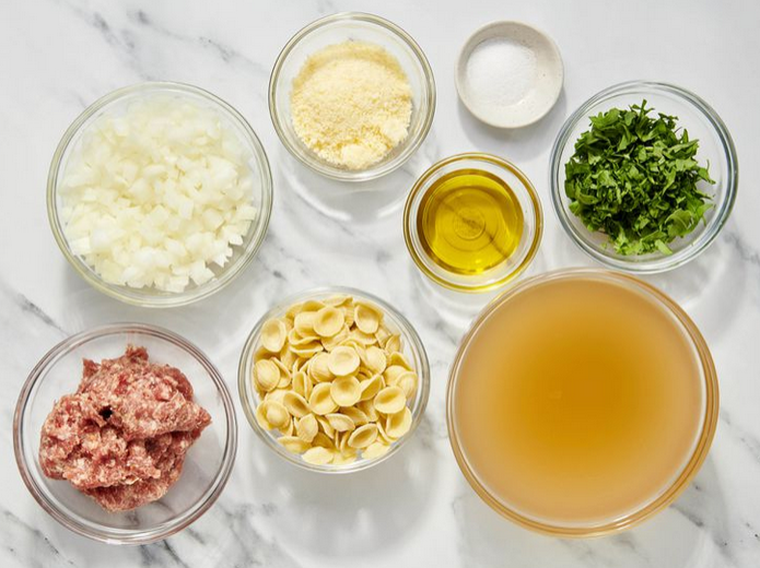 Это вкусное блюдо из макарон орекьетте состоит всего из нескольких ингредиентов и очень дёшево в приготовлении. Видео приготовления этого блюда можно посмотреть здесь: https://dzen.ru/video/watch/68bc09a28e7ce759f8912282 Время на подготовку — 15 минут. Время приготовления — 25 минут. 2 порции. Ингредиенты: 1. Соберите ингредиенты 2. Нагрейте оливковое масло в большой глубокой сковороде на среднем огне. Добавьте лук с щепоткой соли; готовьте и помешивайте, пока лук не станет мягким и прозрачным, примерно 5 минут. Добавьте колбасный фарш и готовьте до появления золотистой корочки, 5-7 минут. 3. Влейте 1.5 стакана куриного бульона в смесь с колбасой и доведите до кипения. Используя деревянную ложку, соскабливайте поджаренные кусочки пищи с дна сковороды. 4. Добавьте макароны орекьетте; готовьте и перемешивайте пасту в горячем бульоне, добавляя понемногу оставшийся бульон, по мере впитывания жидкости. Готовьте пока макароны не приготовятся и бОльшая часть бульона не впитается, примерно 1