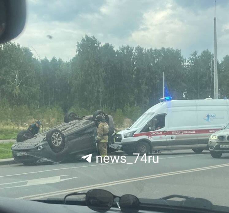 Машина перевернулась в ДТП на перекрестке Сахарова и 250-летия Челябинска, пишут читатели