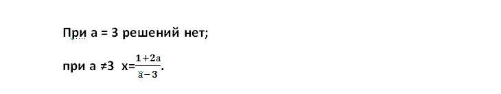 Из всех заданий с параметрами линейные уравнения являются самыми простыми, поэтому начинаем с них Пример 1: Решить уравнение 5х + а = -1 Решение: просто выражаем х через а, это и есть ответ Ответ: х=(-1-а)/5 Вспомним, что простейшее линейное уравнение имеет вид kx = b. При решении таких уравнений могут быть случаи: 1. Пусть k – любое действительное число не равное нулю и b – любое действительное число , тогда x = b/k. 2. Пусть k = 0 и b ≠ 0, исходное уравнение примет вид 0 · x = b. У такого уравнения решений нет. 3. Пусть k и b числа, равные нулю, тогда имеем равенство 0 · x = 0. Его решение – любое действительное число. Алгоритм решения такого типа уравнений: 1. Определить «контрольные» значения параметра. 2. Решить исходное уравнение относительно х при тех значениях параметра, которые были определены в первом пункте. 3. Решить исходное уравнение относительно х при значениях параметра, отличающихся от выбранных в первом пункте. 4. Записать ответ можно в следующем виде: Ответ: 1) п