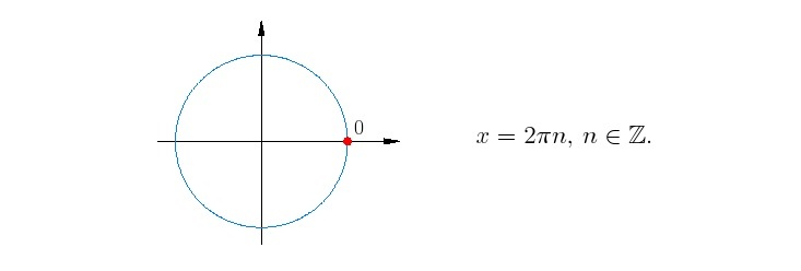 По определению cos x - это абсцисса точки тригонометрической окружности, которая отвечает углу х. Этого достаточно для рассмотрения уравнения cos x=а При а больших 1 или меньших -1 уравнение не имеет решений, так как синус не может принимать значений по модулю превосходящих единицу. В остальных случаях уравнение cos x=а. имеет бесконечное множество решений. На тригонометрической окружности находим точки с абсциссой1. Такая точка одна Для описания множества углов, соответствующих одной точке тригонометрической окружности, нужно взять какой нибудь один угол из этого множества и прибавить 2πп На тригонометрической окружности находим точки с абсциссой -1. Такая точка одна На тригонометрической окружности две точки с абсциссой 0 Для описания множества углов, соответствующих двум диаметральным точкам тригонометрической окружности, нужно взять какой нибудь один угол из этого множества и прибавить πп Все рассмотренные уравнения являются частными случаями уравнения cos x =а Обе серии решений мо