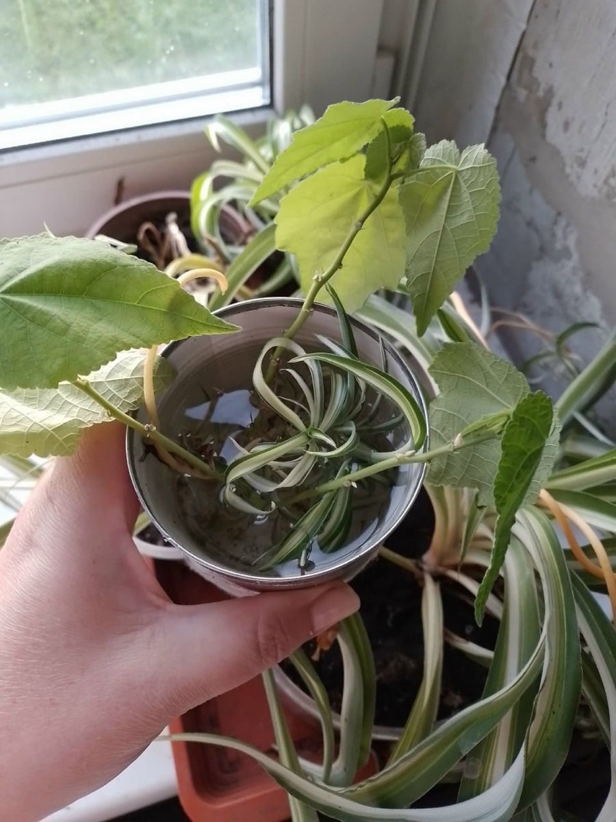 Поставила сегодня черенки абутилона на укоренение, вместе с ними поставила черенок хлорофитума