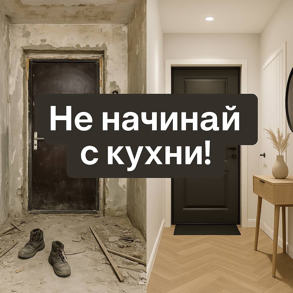 90% заказчиков уверены: «Кухня - самое важное, начнём с неё!» Но на практике это оборачивается хаосом и лишними расходами. Правильный старт ремонта - с прихожей. Вот 5 причин, о которых молчат строители: 1. Температура и влага Входная дверь открыта по 50 раз в день. Холод и влага гуляют по всей квартире, портят стяжку и краску. 💡 У нас был случай: шпаклёвка в гостиной пошла трещинами уже через месяц, потому что прихожая осталась «голой». 2. Логистика Все мешки, панели и плитка проходят через вход. Черновой пол прихожей превращается в свалку. 📦 Один мешок цемента весит 25 кг. Представьте сотню таких, протащенных по незакрытому полу. 3. Безопасность Грязь + вода = каток. 😬 Наш плиточник поскользнулся и разбил коробку плитки на 20 000 ₽. Больно не только ноге, но и кошельку. 4. Психология Когда готова прихожая, появляется «островок чистоты». Клиент видит результат и меньше нервничает. ✨ Даже маленький готовый кусочек квартиры даёт ощущение движения вперёд. 5. Шум и соседи Сделанная пр